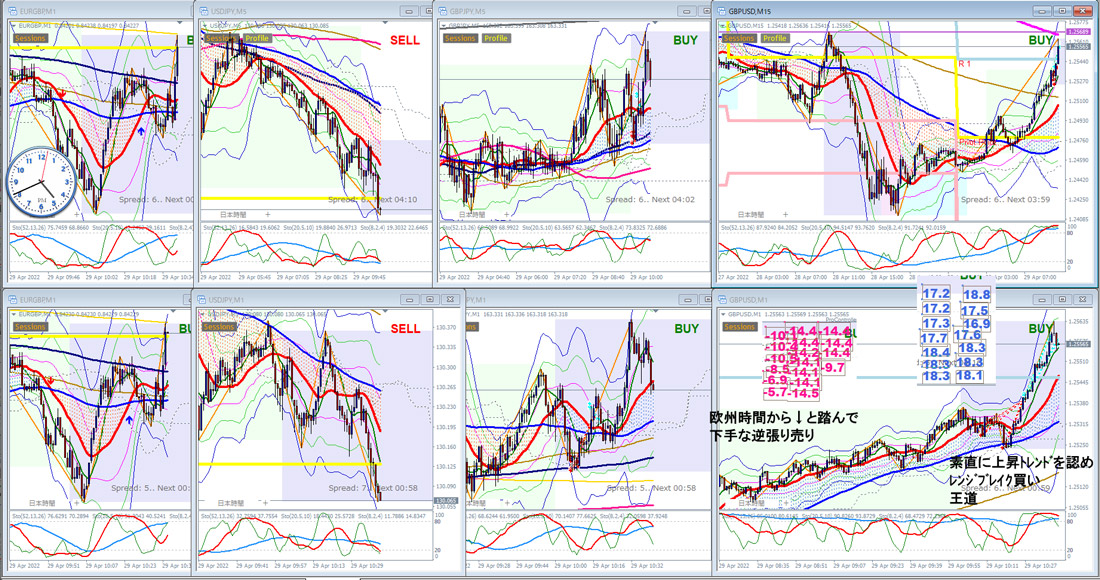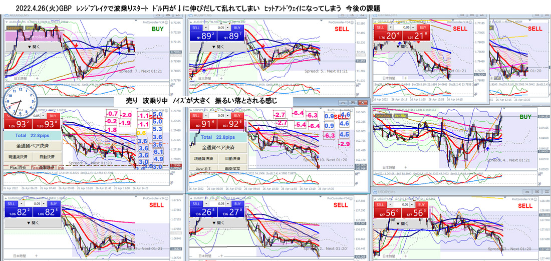 2022.4.26(火)GBP レンジブレイクで波乗りスタート ドル円が↓に伸びだして乱れてしまい ヒットアンドウェイになってしまう 今後の課題
