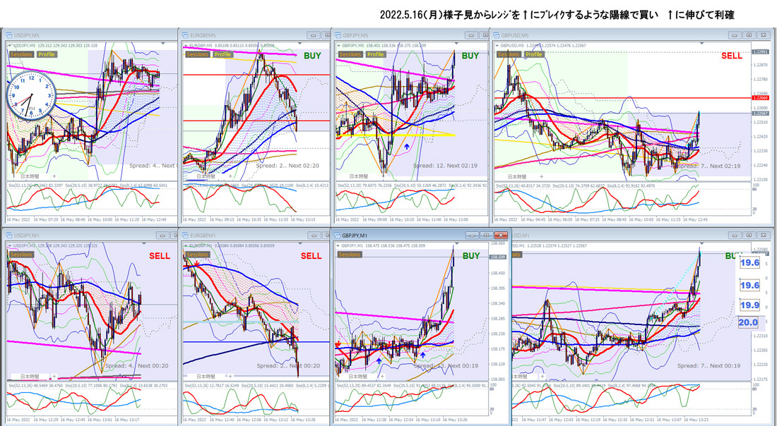 2022.5.16(月)静かな相場を静観 初動の動きを見つけて欲張らず利確 その後振り回され見失い無駄打ち…
