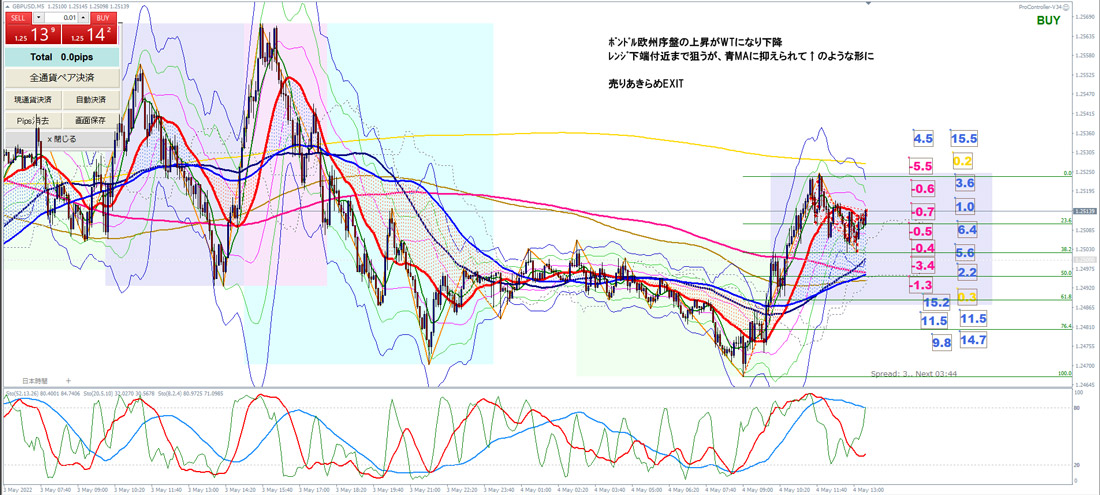 2022.5.4(水)本日深夜FOMC~欧州時間波風の少ない相場つき~米時間謎のポンド売り~FOMC異常な乱高下最後に乱高下レンジブレイク↓