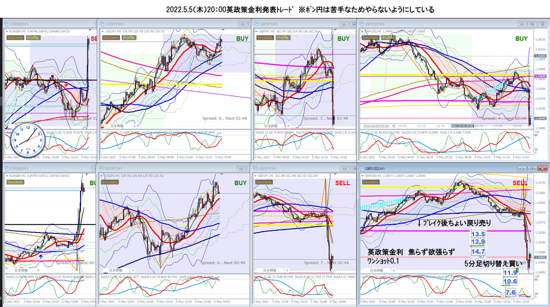 2022.5.5(木)20:00英政策金利発表トレード「落ちるナイフを拾って」小銭的に勝っても後で全部失うことになる